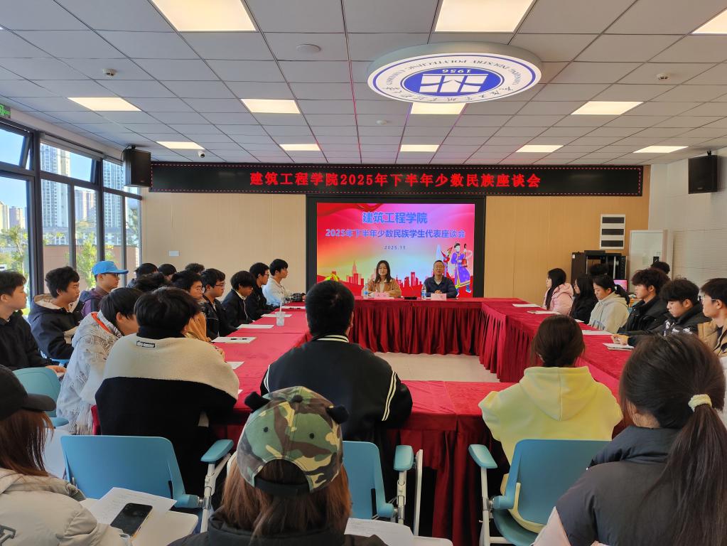 11月20日,建筑工程学院在南北校区召开少数民族学生座谈会,师生共同学习民族团结讲话精神,学生代表畅聊学习生活需求,老师现场回应并记录建议。活动以交流聚共识,既增进民族情谊,也为学院精准服务少数民族学生、深化民族团结工作奠定基础。