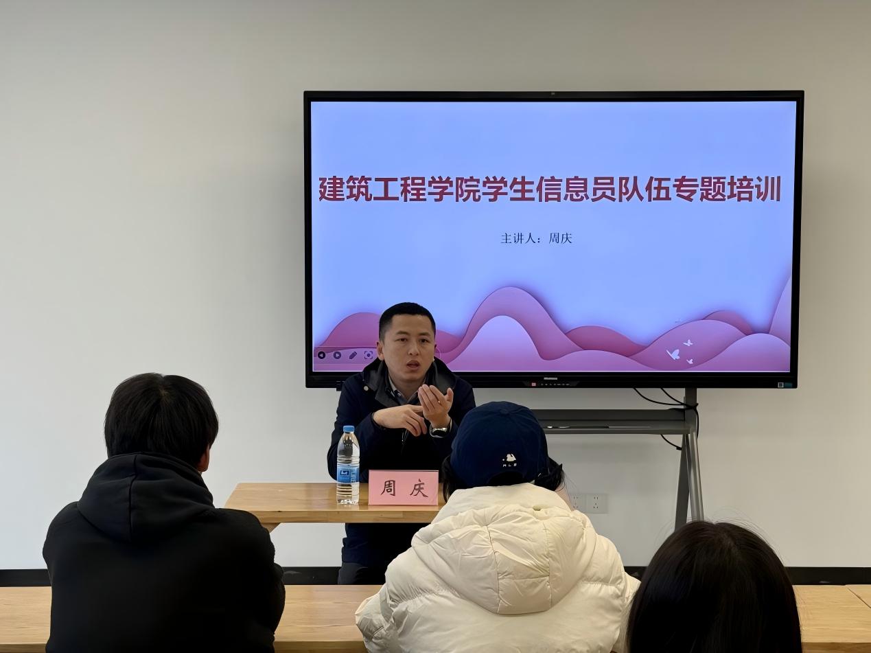 为进一步提升学生信息员队伍的责任意识与综合素养,充分发挥学生信息员在校园管理与安全稳定中的桥梁纽带作用,2025年12月3日,建筑工程学院在南川校区8号楼“一站式”学生社区文沁苑举办学生信息员队伍专题培训。学院党总支周庆书记主讲,学院25级学生信息员共24人参加培训。